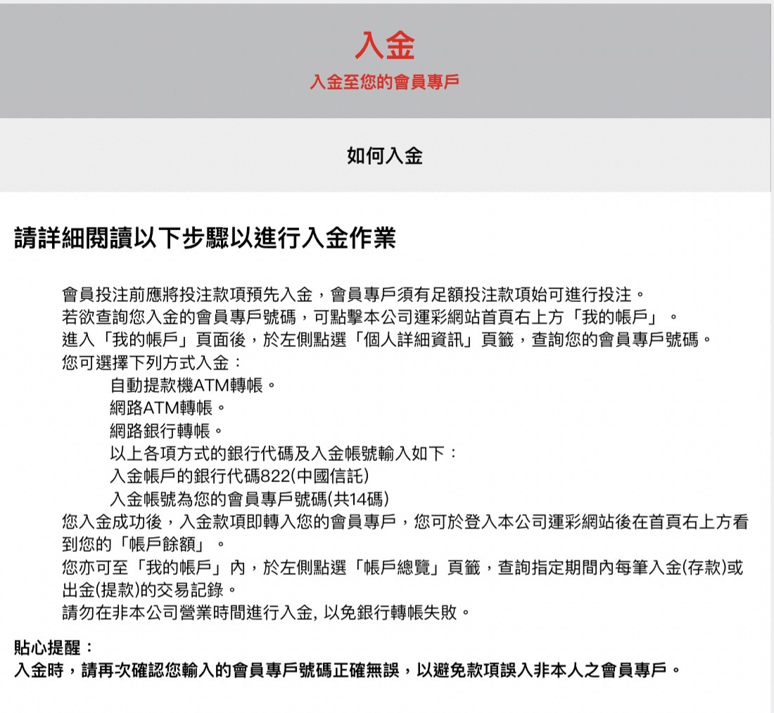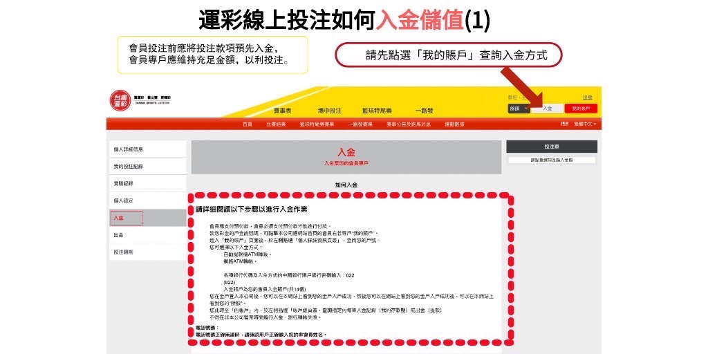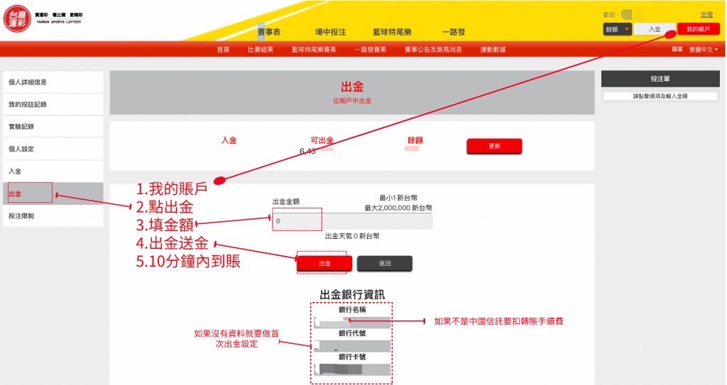 至台灣運彩官網點選登入>我的帳戶>出金>填入欲出金金額>按下(出金)