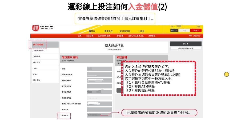 找一張白紙,放上本人要出金的銀行存摺,在下方親筆寫上身分證字號,運動彩券會員號,會員本人在簽名拍照